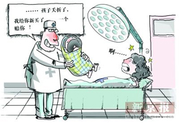 2006年2月,新疆一位年輕孕婦在昌吉市恒安堂醫(yī)院生產(chǎn)。由于醫(yī)生誤診,導致嬰兒出生即夭折、產(chǎn)婦大出血后切除全部子宮。事故發(fā)生后,醫(yī)院院長偷偷打來電話說買了個女嬰賠給他們。(4月24日《中國青年報》)