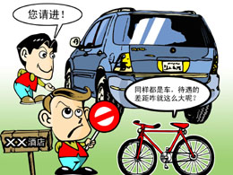 目前賓館酒店不讓自行車進(jìn),其實(shí)在全國(guó)是一個(gè)普遍的現(xiàn)象,賓館、酒店對(duì)自行車的歧視,說(shuō)到底是社會(huì)嫌貧愛(ài)富心理的反映,自行車被認(rèn)為代表貧窮,這種觀念根深蒂固后,才會(huì)形成這樣的“規(guī)矩”,才會(huì)有即使“兩會(huì)”參會(huì)委員,也可讓一個(gè)保安拒之門外的咄咄怪事。 |