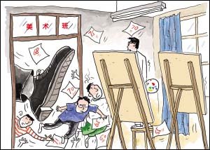 湖北省當陽二高為高考升學率做準備,將考試成績在300分以下的學生,“一刀切”地轉入到了美術班。該校高二年級主任說,這樣分班是因為這些學生的成績太差了,進了美術班,可能升學更有希望。(《楚天都市報》2月17日報道)