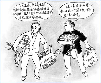 6月1日,“限塑令”正式在各地實施,各類市場上的塑料袋使用明顯減少,但隨之而來的問題是,顧客買一兩只所謂的環(huán)保袋,要將所買的食品、日用品都混裝一起很不衛(wèi)生,即使單買食品,生熟不同,也不能全都放在一個大袋子里吧?而原本有責(zé)任為顧客提供購物方便的超市,現(xiàn)在則看著顧客的煩惱袖手旁觀。 為此不少消費者呼吁,商家有責(zé)任為顧客提供免費環(huán)保購物工具。當(dāng)然,免費的前提是國家鼓勵企業(yè)大批量生產(chǎn)環(huán)保購物袋,如果環(huán)保購物袋的成本能降到與塑料袋差不多,商家也就不必再打小算盤了。