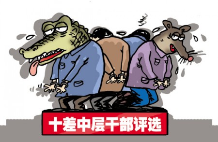 《齊魯晚報》報道,山東濟(jì)寧評選“十佳十差”中層干部,“第一次搞類似的評選活動,壓力可想而知,但市領(lǐng)導(dǎo)決心很大”。評選出的“十差”,包括城市建設(shè)綜合開發(fā)中心原主任宋偉等8人,都因經(jīng)濟(jì)問題已進(jìn)入司法程序。另有1人被“雙開”,1人受黨內(nèi)警告處分。 進(jìn)入了司法程序,幾乎是犯罪嫌疑人了,最輕的也是被“雙開”、受黨內(nèi)警告處分。這“十差”確實真夠差的,但選這幾個政治上的“死老虎”,談何“壓力”?何需“決心”?按一般原則,這10人應(yīng)該已經(jīng)被清除出中層干部的隊伍了,但一搞“運(yùn)動”,又重新掛上了“中層干部”頭銜,這短暫的回光返照,有似于街頭的耍猴,猴子心中固然不爽,牽繩子的耍猴人也未見得高明。又打雷又刮風(fēng),憋了半天,轟隆隆地下的卻是這樣一顆不倫不類的蛋。 近來各地都興選這選那,樣子是開明的,但只有名實相符方能大好。
