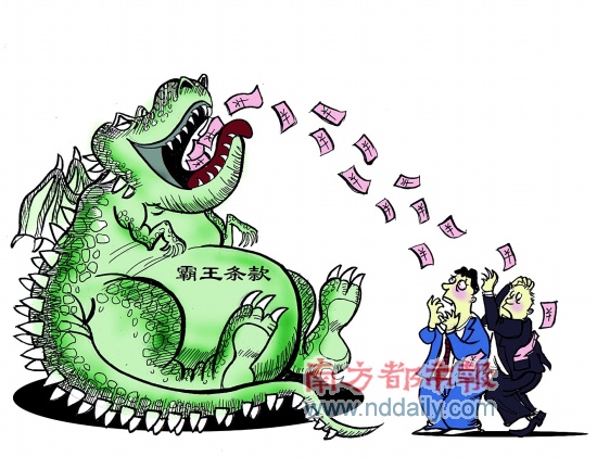 “霸王條款”久成痼疾,民怨深重。比如酒店“12點(diǎn)退房、違者加收半天房費(fèi)”的所謂“行規(guī)”,社會(huì)各界抨擊了多年,竟毫發(fā)未傷、依然故我。不過(guò),事情似乎正朝公平的一面發(fā)展———將于5月1日實(shí)施的《上海市旅館業(yè)管理辦法》中,“入住旅館超過(guò)12點(diǎn)另行計(jì)費(fèi)”被剔除,改由旅館與旅客自行約定。