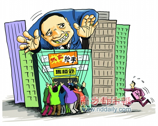 在北京市朝陽(yáng)區(qū)東八里莊的一個(gè)居委會(huì)里,張大媽近日又開(kāi)始忙起來(lái)了,同往年一樣,她又接受了東四環(huán)幾個(gè)待銷(xiāo)樓盤(pán)的邀約,組織一批老年人到幾個(gè)售樓中心“簽約”,一天管吃喝還凈掙50元。據(jù)介紹,她們有時(shí)還要到國(guó)貿(mào)春季房展會(huì)上演“訂房”,前臺(tái)簽單,后臺(tái)拿錢(qián)走人。(《人民日?qǐng)?bào)》4月6日)