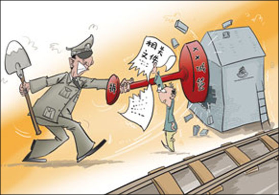 新聞:8日,武(漢)九(江)鐵路電氣化改造工程施工中,位于洪山區(qū)花山鎮(zhèn)的一處在建的通信機械室,被當?shù)爻枪苷`認為是“違建”而遭砸墻損毀。當時,11名城管隊員來到工地,僅向現(xiàn)場施工人員問了句“老板在不在”?緊接著便手持撬杠、洋鎬等朝已砌好的墻面上砸去。隨后趕來的工地負責人廖海,拿出相關文件向對方解釋也無濟于事。(本報昨日報道)