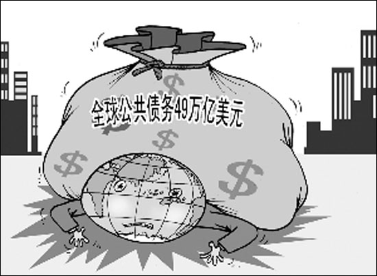 2008年全球的公共債務(wù)總額占全球國內(nèi)生產(chǎn)總值的63%,為10年多來最低水平。但在危機環(huán)境下,今明兩年各國公債大增,穆迪公司最新發(fā)布的一份報告估計,2010年全球公共債務(wù)總額預(yù)計將達49萬多億美元,占比將達80%。