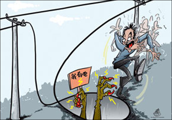 新聞背景:武昌武珞路大東門公交車站旁,3根快要落地的電線上懸掛著一副“電線的敬告”警示牌:“我墜落在地已有兩個多月了,一直沒有人管,現(xiàn)警告大家不要靠近我——我有電!”這副警示牌上的敬告語打印在一張紅紙上,紅紙被過塑,用兩根繩子系在電線上。(本報昨日報道)