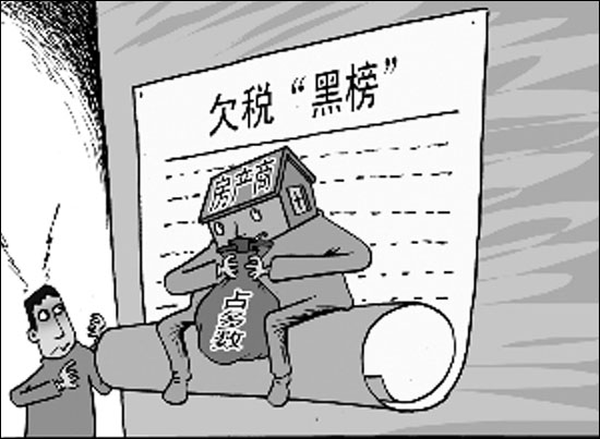 北京市地稅局日前發(fā)布欠稅“黑榜”,35家上榜企業(yè)每家累計(jì)欠繳800萬(wàn)元以上。房地產(chǎn)及相關(guān)行業(yè)公司占比約為八成,其中北京中地房地產(chǎn)公司欠稅高達(dá)1.44億元。再說(shuō)房地產(chǎn)開發(fā)周期長(zhǎng)、前期預(yù)算不準(zhǔn)等理由,是不是太牽強(qiáng)了些?