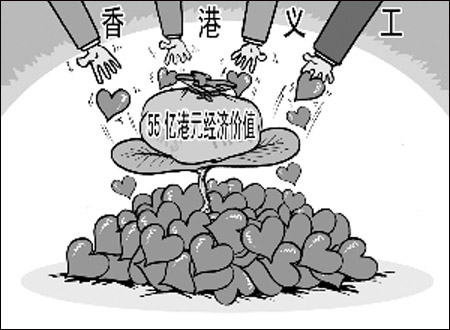 香港義務(wù)工作發(fā)展局5日發(fā)布的調(diào)查結(jié)果顯示,香港義工去年創(chuàng)造了55億港元的經(jīng)濟(jì)價(jià)值,相當(dāng)于4.15萬份全職工作。此外,因?yàn)橛兄诮⒒ハ嚓P(guān)懷、信任及和諧的社會(huì),100萬香港義工對(duì)社會(huì)的貢獻(xiàn)更有意義。
