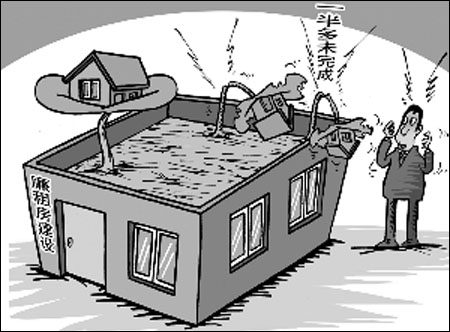 根據(jù)審計(jì)署審計(jì)長向全國人大常委會所作2009年度工作報(bào)告,19個(gè)省市的448個(gè)新建廉租住房和10個(gè)棚戶區(qū)改造項(xiàng)目,去年底,分別僅完成計(jì)劃投資額的41%和42%。