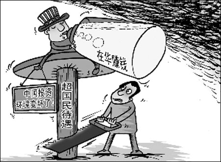在常年享受超國(guó)民待遇后,當(dāng)中國(guó)開(kāi)始對(duì)外資、內(nèi)資企業(yè)一視同仁時(shí),美國(guó)企業(yè)紛紛叫嚷起來(lái):“中國(guó)在搞貿(mào)易保護(hù)”,“中國(guó)投資環(huán)境變差了”!美國(guó)人的市場(chǎng)經(jīng)濟(jì)哲學(xué)不就是大家在平等起點(diǎn)上競(jìng)爭(zhēng)么?怎么老是雙重標(biāo)準(zhǔn)呢?