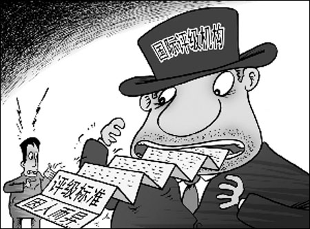 最近暴露的一些證據(jù),讓世人驚覺,原來國(guó)際“三大”評(píng)級(jí)巨頭的評(píng)判標(biāo)準(zhǔn)竟“因人而異”。無怪乎美國(guó)專欄作家弗里德曼要說,“美國(guó)可以用炸彈摧毀一個(gè)國(guó)家,穆迪可以用債券降級(jí)毀滅一個(gè)國(guó)家。有時(shí)候,兩者的力量說不上誰(shuí)更大”。