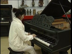 近日,在中國黑龍江省牡丹江市步行街古玩市場(chǎng)內(nèi),兩臺(tái)“古董”鋼琴引起人們關(guān)注。據(jù)專家判定,這兩臺(tái)鋼琴是前沙俄皇帝的御用鋼琴,至今已歷經(jīng)一個(gè)多世紀(jì)的歲月。 據(jù)了解,這兩架鋼琴,一架為三角鋼琴,一架為立式鋼琴,它們的擁有者是牡丹江市的收藏愛好者裘憲濤。據(jù)他介紹,這架已經(jīng)150歲的三角鋼琴品牌是別克(J.BECKER),琴譜架由雕刻精美的俄文組成,琴上鎏金鑲嵌了沙俄雙禿頭鷹國徽,并且在琴弦下方寫有古俄文字樣。經(jīng)專業(yè)人士鑒定,這兩臺(tái)鋼琴屬于前沙俄皇帝,生產(chǎn)年份是1860年。 另一臺(tái)立式鋼琴的品牌為施羅德,琴蓋上鑲嵌的三個(gè)徽章,從左到右分別代表著俄羅斯沙皇的私人皇旗徽章、沙俄雙禿頭鷹國徽和沙俄的民族徽標(biāo)。鋼琴的背面印有俄羅斯第一鋼琴廠的廠商說明書,上面有“皇家鋼琴專門制造者”的字樣。據(jù)記載,此臺(tái)鋼琴的離廠年份是1885年,距今已有125年的歷史。 收藏這兩架鋼琴的裘憲濤對(duì)記者說,能夠把這兩架鋼琴維護(hù)起來,是對(duì)社會(huì)的一種義務(wù)。他會(huì)非常小心的愛護(hù)它,保養(yǎng)它。 在現(xiàn)場(chǎng)記者還看到一些慕名而來的鋼琴愛好者,他們對(duì)這兩臺(tái)“古董”鋼琴愛不釋手。牡丹江教育學(xué)院高級(jí)鋼琴教師李明認(rèn)為,這兩臺(tái)鋼琴無論從音色、柔韌程度還是明亮力方面都比國產(chǎn)鋼琴好很多,彈了一曲感覺很過癮。 據(jù)專業(yè)人士介紹,這兩臺(tái)古鋼琴經(jīng)過一個(gè)多世紀(jì)的洗禮仍保存完好,依然能彈奏出美妙的琴音,實(shí)屬不易。