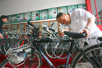 “這些車大多是英國和日本產(chǎn)的,還有一小部分是荷蘭、泰國和馬來西亞生產(chǎn)的!卑【傻耐趺鳝t老人說,這些自行車寶貝都是他一輩子的心血,為了收藏這些寶貝,他幾乎傾注了所有的積蓄和業(yè)余時間。他時不時地要轉(zhuǎn)一轉(zhuǎn)北京和外地的舊貨市場,最常去的是上海、天津、長春等地。他弄到手的車通常都有七至八成新,但也有一些剛買回來的時候比較破舊,需要自己修理。