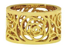 將Chanel 經(jīng)典的山茶花造型巧妙地運(yùn)用到珠寶上,優(yōu)雅迷人。這個(gè)系列的作品有很多,材質(zhì)有黃金亦有鉑金,款式則囊括了手鐲、戒指、耳環(huán)、項(xiàng)鏈等眾多款式。其中最特別也最閃亮的是一款鑲嵌有鉆石的手鐲表,堪稱珠寶表的典范。