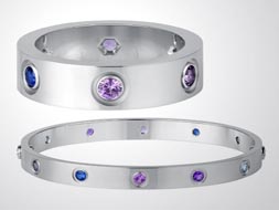 彩色寶石系列全情表現(xiàn)愛之真彩,此系列選用藍(lán)色系和紫色系的優(yōu)質(zhì)寶石精巧嵌于手鐲和戒指之上,高貴典雅的寶石時(shí)時(shí)閃爍真摯絢麗的光芒。魅惑多彩的寶石仿佛悅動(dòng)出人生中的五彩畫面,輕盈地點(diǎn)綴于澄澈的白金之間;這一系列珠寶宛如閃耀在腕間和指間的精靈,時(shí)刻洋溢著愛情的幸福與甜蜜,并恒久映射出對(duì)愛情的享受與珍惜。 把愛環(huán)環(huán)緊扣,將愛化繁為簡(jiǎn),讓愛豐裕多彩。卡地亞用全新