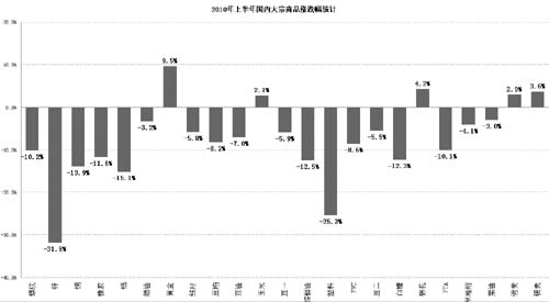 6月份,國內(nèi)大宗商品市場受國內(nèi)信貸緊縮、投資增速下降以及外圍經(jīng)濟動蕩等因素影響,整體呈現(xiàn)震蕩下跌格局。后期看來,這些因素還將在一定時間內(nèi)主導(dǎo)商品走勢,預(yù)計7月份大宗商品仍難以擺脫弱勢震蕩,但農(nóng)產(chǎn)品由于進入生長關(guān)鍵期,或因天氣因素出現(xiàn)反彈。