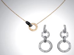 雙環(huán)緊扣,仿佛你我的手緊密相牽,彼此相連。卡地亞為全新 雙環(huán)恒久系列賦予了絕美象征:無論是項鏈、手鏈,還是耳墜,都將愛的美好與溫情誠心寓于牽手雙環(huán)之中。愛的承諾化身緊扣的雙環(huán),如精致的標點,嵌入愛人們的喃喃細語中。 黑色高科技精密陶瓷與璀璨奪目的鉆石和熠熠生輝的玫瑰K金巧妙融合,奪目的光澤呼應低調的啞光,明暗對比之下,深邃自如的氣質傾心流出;而在閃亮的鉆石與白K金的相互映襯下, 雙環(huán)恒久系列閃耀絕倫,盡顯尊貴大氣。