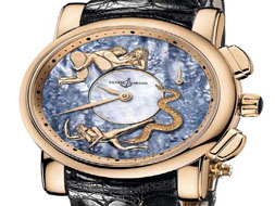 2010年6月11日,雅典表時(shí)計(jì)瑰寶腕表展如期開幕。雅典于早期已致力研制三問報(bào)時(shí)表,是復(fù)興問表技術(shù)的先鋒。加入了精雕細(xì)琢的活動(dòng)人偶表盤,成為史無前例的創(chuàng)作,令雅典的三問報(bào)時(shí)表聲名大噪。