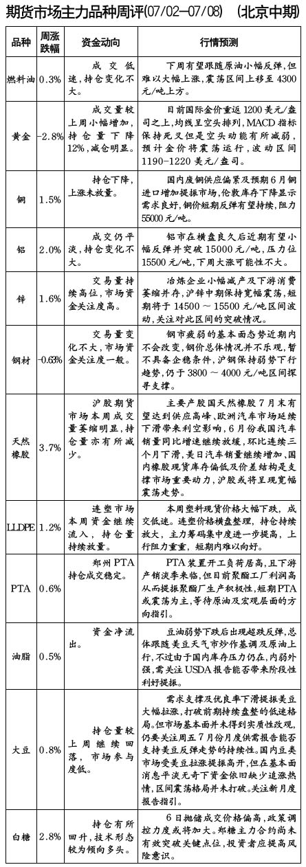 期貨市場(chǎng)主力品種周評(píng)[07/02-07/08]