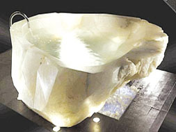 一個(gè)意大利生產(chǎn)的精美絕倫的水晶浴缸日前開(kāi)出了79萬(wàn)美元(約合人民幣535萬(wàn)元)的高價(jià)!這個(gè)長(zhǎng)2米、高55厘米的浴缸來(lái)自意大利,是用一塊巨大的白色水晶石雕刻而成的。這塊水晶石于2006年在巴西亞馬孫河流域被開(kāi)采出來(lái),外表看上去完美無(wú)瑕而且晶瑩剔透,經(jīng)萃取后原封不動(dòng)地送往意大利。在那里,別具匠心的設(shè)計(jì)師把它打造成一個(gè)美輪美奐的浴缸,并精選鉆石配飾加以點(diǎn)綴。