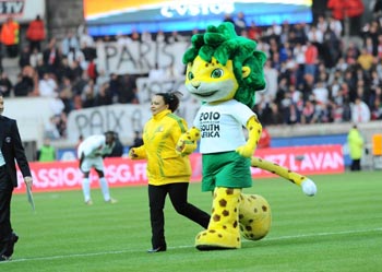 南非2010世界杯足球賽吉祥物小豹子“扎庫(kù)米”。新華社/西霸 |