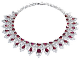 Hollywood星光大道上巨星艷麗回眸,垂落的層疊式鉆石如飛瀑傾瀉頸項之間,奢華之花猛然間綻放,瞬間獵殺菲林無數,美艷奢華驚艷世界。Harry Winston曠世巨作紅寶石鉆石項鏈,利用水滴形、馬眼形、圓形明亮式切工的鉆石,將全球僅存3%并耗時2年才收集完全的無雜質絢麗珍貴紅寶石層層溫柔包裹,于不經意間讓你被好萊塢空氣里的魅惑奢華撞個滿懷,似乎這一刻在眼睛一張一合之間,又有一幕珠寶傳奇即將上演。