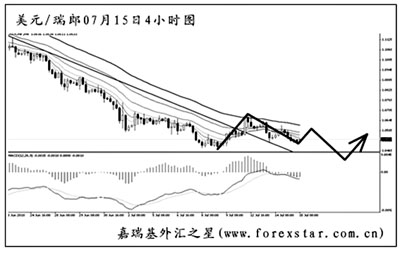 ▲美元兌瑞郎將下降趨勢線升破,目前在回探前方低點(diǎn),此前MACD出現(xiàn)了幾次明顯的底背離信號,預(yù)計美元兌瑞郎將發(fā)生一波上行回調(diào),但幅度料將有限。圖中均線系統(tǒng)壓制匯價,后市再創(chuàng)新低的概率較大。由于日線圖強(qiáng)支撐在1.0435,美元兌瑞郎下跌的空間并不廣闊。