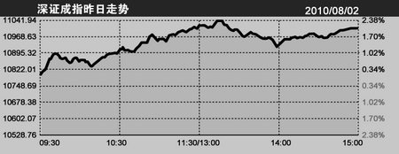 自5月5日以來,深成指昨日首次收盤重回11000點上方。