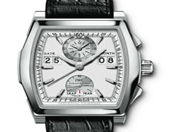 萬(wàn)國(guó)表(IWC)達(dá)芬奇數(shù)字式萬(wàn)年歷鉑金腕表這款腕表融合了先進(jìn)科技與全新酒桶形鉑金表殼,全球限量發(fā)售500枚。腕表將帶飛返功能的計(jì)時(shí)碼表置于獨(dú)立表盤(pán)的中心,表盤(pán)同時(shí)帶有12小時(shí)時(shí)標(biāo)、60分鐘刻度,以及數(shù)字式萬(wàn)年歷,可顯示閏年周期、月份和日期。表殼:鉑金材質(zhì),酒桶形,藍(lán)寶石水晶玻璃底蓋,可顯示機(jī)芯運(yùn)轉(zhuǎn)。表盤(pán):紐索飾紋,葉形指針,棒形時(shí)標(biāo),60格分鐘刻度。機(jī)芯:自動(dòng)上弦機(jī)芯,474枚零件,52枚寶石軸承,68小時(shí)動(dòng)力儲(chǔ)備,每小時(shí)振頻28,800次。功能:時(shí)、分、小秒針,飛返式計(jì)時(shí)碼表功能,萬(wàn)年歷。
