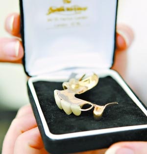 英國二戰(zhàn)時(shí)期首相溫斯頓·丘吉爾的一副假牙近日在英國諾?丝け慌馁u,成交價(jià)高達(dá)15200英鎊(約160880人民幣)。 據(jù)報(bào)道,丘吉爾從小說話時(shí)就有一種獨(dú)特的咬舌音,這幾乎已經(jīng)成為他聲音的標(biāo)志。為了在演說中保留這個(gè)特點(diǎn),他特別請?jiān)O(shè)計(jì)師特制了假牙,并總是隨身攜帶兩副。二戰(zhàn)期間,英國軍民經(jīng)常從廣播中聽到丘吉爾那富有感召力的精彩演說,他的假牙可謂功不可沒,人們稱之為“拯救世界的假牙。 目前世界上僅有兩副丘吉爾生前戴過的假牙,一副被保存在倫敦的一家博物館,成為那里最重要的藏品之一,另一副則由其制造者的兒子在英國諾?丝づ馁u。 丘吉爾的這副假牙的預(yù)計(jì)拍賣價(jià)為5000英鎊,它吸引了來自世界各地的競拍者。最終“拯救世界的假牙”被拍出15200英鎊的高價(jià),買主是一位丘吉爾紀(jì)念品收藏家。