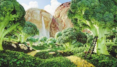 日前,英國攝影師Carl Warner開創(chuàng)了一種獨(dú)特的風(fēng)景攝影形式:畫面所呈現(xiàn)的色彩和形狀都是用蔬菜和水果制作而成。他把這種特殊的藝術(shù)形式命名為“食物風(fēng)景攝影”。他的作品因其獨(dú)特的創(chuàng)意、濃郁的夢幻氣息、別出心裁的構(gòu)圖,讓人震撼。