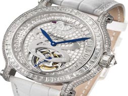 過去幾年蕭邦推出了多款不同的陀飛輪系列:L.U.C陀飛輪經(jīng)典系列、L.U.C陀飛輪鋼翼腕表、L.U.C陀飛輪傳統(tǒng)腕表等,如今則為女士們特別制造了這款異常華美的L.U.C