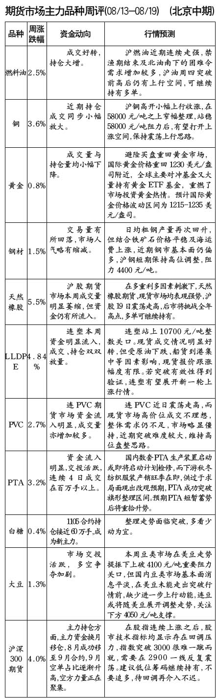 期貨市場主力品種周評[09/13-08/19]
