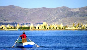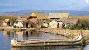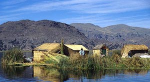 600多年前,為逃避西班牙和葡萄牙的殖民統(tǒng)治,烏魯斯族人來到蘆葦叢生的湖上,依湖而居,從此成為這里的主人。 起初的烏魯斯人,用蘆葦、蒲草編成厚實的蘆席和蒲席,再編成草船,在船上生活。后來,他們把幾條、十幾條草船連在一起,成為更穩(wěn)定的住所,浮島就這樣出現(xiàn)了。隨后,他們又編出了精巧的房屋,F(xiàn)在,湖上的浮島有60多個,小的有籃球場那么大,大的竟設有郵局、小學等公共設施。 踏上秘魯?shù)牡目系母u,你會感覺天是那樣近。腳下松軟的蘆葦蒲,不時發(fā)出“吱吱”聲,訴說著在此繁衍生息幾百年的烏魯斯人的故事。湖面波光粼粼,穿著五顏六色民族服裝的土著,是島上最鮮活的景物。