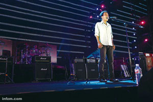 每位入場觀眾必須通過嚴(yán)格的安檢,從各種液體到打火機(jī)都不得帶入場內(nèi)——就像登機(jī)一樣。 大型演出設(shè)置安檢并不新鮮,新鮮的是參加演出的13支樂隊(duì)在演出前一天接到通知,演出當(dāng)晚結(jié)束后,都不得離開,必須集體接受尿檢。如果集體尿檢得以實(shí)施,將開世界搖滾史的先河。 19∶25,舞臺(tái)上的大屏幕開始播放視頻,這是一場決不能拖延時(shí)間的演唱會(huì)——工體要求10點(diǎn)半前必須交還場地,要確保四萬名觀眾坐末班車、末班地鐵回家,北京的公交和地鐵相應(yīng)延遲半小時(shí),這樣的舉措,在北京并不多見。