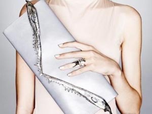Dominic Jones的首飾系列風(fēng)格一直游離在自然和優(yōu)雅時尚之間,但也許它那瘋狂的外表會嚇走很多人。這次的最新系列中犀牛角的戒指,鯊魚鋸齒狀的手袋裝飾邊,短吻鱷頜齒的夸張手鐲,都是本季的最大亮點。