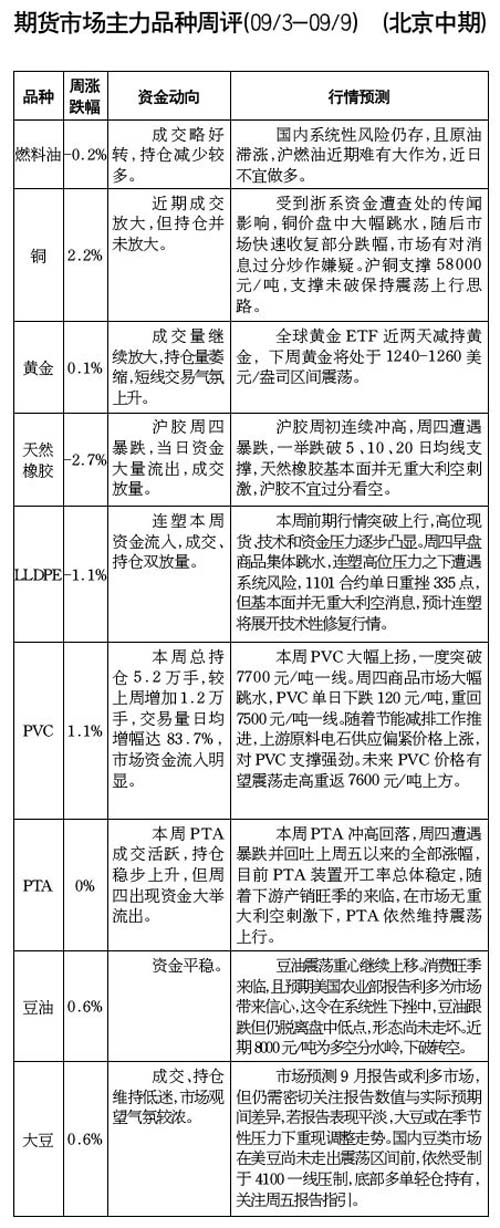 期貨市場主力品種周評(píng)[09.03-09.09]