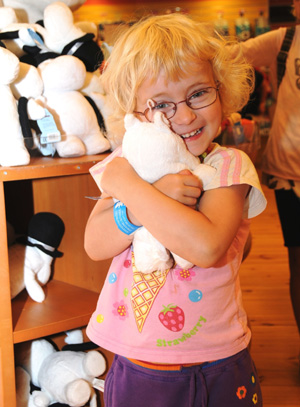 在芬蘭南部沿海小城南塔利的一個小島上,有一個深受孩子們歡迎的姆米樂園。這是根據(jù)芬蘭著名女作家和畫家托芙·揚松的《姆米》系列童話故事建立的主題公園!澳访资澜纭敝黝}公園建立10多年來,已接待成千上萬來自世界各地的孩子,是孩子們喜愛的童話天堂。 姆米形似河馬,純樸稚氣,憨態(tài)可掬,是揚松塑造的一個非常惹人喜愛的童話形象。自從上世紀(jì)90年代初日本根據(jù)《姆米》系列童話故事制作的104集大型動畫片《姆米》上映以來,姆米成為風(fēng)靡世界的卡通形象。為此,芬蘭南塔利市根據(jù)動畫片中的場景于1993年修建了“姆米世界”主題公園,為探尋姆米蹤跡的兒童及家長們提供了身臨其境的獨特環(huán)境。 今年是《姆米》誕生65周年。很多孩子在父母的陪伴下來到“姆米世界”一游。在“姆米世界”里,有一座漂亮的姆米大樓,姆米一家就“住在”這座大樓里。頭戴黑色禮帽的姆米爸爸和姆米媽媽在家門口歡迎小朋友們來做客。孩子們紛紛和動畫片中見到過的姆米卡通形象擁抱、握手,并合影留念。年輕的姆米和姆米的女友格妮興高采烈地為小客人們表演節(jié)目。 在三層高的“姆米大樓”里,孩子們爬上爬下,鉆進(jìn)鉆出,既好奇又隨意地參觀著姆米的家。孩子們在姆米家里自由自在地玩耍,有的翻閱童話書,有的量一量身高,還有的玩拼圖和各種游戲。一名小姑娘在書架前翻閱著姆米的圖書,然后又在姆米的床上躺一躺,體驗一下在姆米家生活的感覺。 在“姆米世界”里,還專門建造了一艘姆米爸爸出海用的大木船。有的孩子嘗試著轉(zhuǎn)動船上的方向舵,也有的孩子在駕駛艙里觀看航海圖,更多的孩子在船艙里參觀玩耍,或在船頭聽工作人員講述姆米爸爸出海的童話故事。 此外,孩子們可以在島上進(jìn)行各種游戲和探險活動。隨處可見的大型童話書可以讓孩子們了解到更多有關(guān)姆米的故事。姆米劇院每天上演生動有趣的姆米童話劇,吸引著孩子們前來觀看。 揚松于二戰(zhàn)期間開始創(chuàng)作姆米系列童話,她一生共創(chuàng)作了9本帶有插圖的《姆米》童話故事書、3本《姆米》圖畫書和一系列連環(huán)畫作品,并因此于1966年榮獲安徒生國際兒童文學(xué)獎。 姆米一家都是在大自然中和睦相處、互相幫助的各種小精靈。他們在花叢中安睡,在湖中蕩舟,在森林中采摘漿果和蘑菇,在廚房里烘焙食物……這些都是芬蘭人傳統(tǒng)生活的真實寫照。