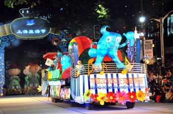 9月12日晚,上海世博會主題花車亮相上;春B。當日,上海旅游節(jié)正式開幕。上海旅游節(jié)是上海一年一度的全市性大型節(jié)慶活動,旨在通過觀光、休閑、娛樂、文體、會展、美食、購物等多種特色旅游產(chǎn)品和近百項活動,集中展示上海的風土人情。上海旅游節(jié)以“人民大眾的節(jié)日”為定位,至今已成功舉辦9屆,每年吸引超過800萬人次的市民游客參與其中。(資料照片) |