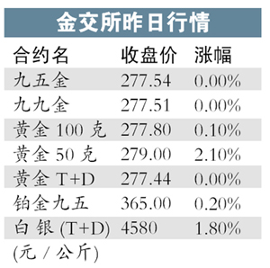 上周國際金價連續(xù)三次刷新歷史紀錄,收于1274.50美元的收盤價歷史新高。截至北京時間20日午市收盤,現(xiàn)貨黃金報1281.7美元/盎司,上海黃金交易所黃金AU(T+D)報收277.45元/克。
