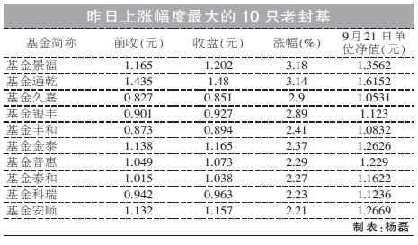 昨日上漲幅度最大的10只老封基