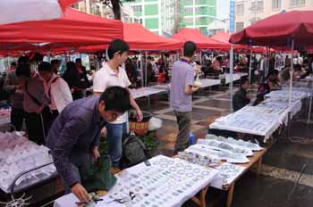 “翡翠之鄉(xiāng)”云南省騰沖縣玉石集市。記者 吉哲鵬/攝 |