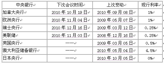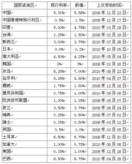 附表二:主要國(guó)家利率變動(dòng)表