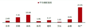 從增配強(qiáng)度來看,平均增配強(qiáng)度較大的行業(yè)主要有房地產(chǎn)(21.05)、采掘(7.31)、金融(4.46)、建筑(3.17)、農(nóng)林牧漁(2.40),也就是說,上周相對較多的資金流入這幾個行業(yè)。