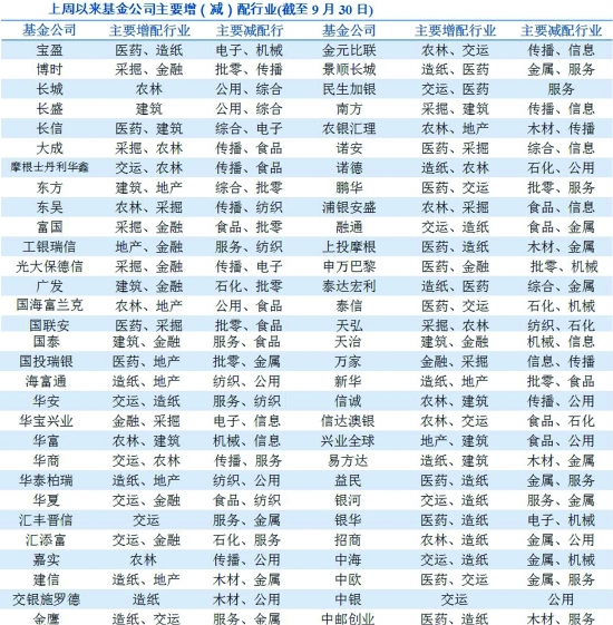 圖2:上周各行業(yè)基金平均減配強(qiáng)度(截至9月30日)