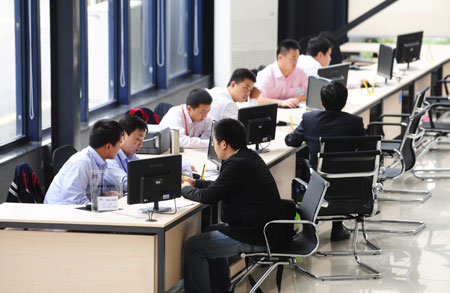 10月12日,在成都市輕微道路交通事故快處城南服務(wù)中心,各家保險公司提供一站式服務(wù)。