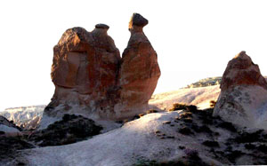 卡帕多奇亞最大的特點就是眾多聳立在平地上形狀奇特的小山峰,其外觀如石筍、似煙囪,不一而足,蔚為奇觀。它們是由數(shù)百萬年前三座火山噴發(fā)后散落的灰燼凝結,再經(jīng)歷數(shù)千年風化和湖河雨水沖刷逐漸形成。