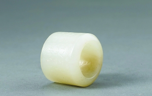 扳指起源于古代狩獵活動(dòng)中,早期叫韘。使用時(shí),將韘套于弓箭手拉弦的拇指上,以起到保護(hù)手指不被弓弦勒傷的作用。韘的質(zhì)地比較多樣,以皮革為材質(zhì)的韘實(shí)用性較強(qiáng),而玉韘是為了體現(xiàn)佩戴者的身份和地位?脊刨Y料中,最早的玉韘當(dāng)屬1976年河南省安陽(yáng)市殷墟婦好墓出土的一件青玉韘,這件玉韘為圓筒形,下端平齊,上端斜口,可套入成年人拇指。其外壁以雙勾線和平地隱起手法雕飾獸面紋,在獸面紋一側(cè)有兩個(gè)圓孔,相對(duì)的一面有勾弦用的凹槽。凹槽的存在說(shuō)明早期玉韘具有一定的實(shí)用性,只是隨著戰(zhàn)爭(zhēng)規(guī)模和作戰(zhàn)方式的變化,以及玉禮制觀念的逐漸滲透,玉韘的實(shí)用性才越來(lái)越削弱,而裝飾性越來(lái)越顯示出來(lái)。正如《詩(shī)經(jīng)·衛(wèi)風(fēng)·芄蘭》所云:“芄蘭之葉,童子佩韘。雖則佩韘,能不我甲。容兮遂兮,垂帶悸兮。”