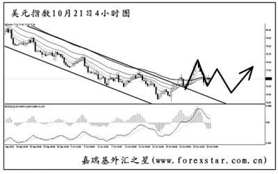 受上述因素影響,美元指數(shù)發(fā)力將圖中的下降通道上沿升破,后市能否繼續(xù)順利挑戰(zhàn)74.15的強(qiáng)支撐成疑。4小時(shí)圖均線(xiàn)系統(tǒng)已被升破,同時(shí)道氏高點(diǎn)77.90的阻力也成功越過(guò),美元指數(shù)有望展開(kāi)一波明顯反彈,目標(biāo)指向79.00一線(xiàn)。但想直接逆轉(zhuǎn)此前的跌勢(shì)有很大難度,預(yù)計(jì)短線(xiàn)美元指數(shù)還將走出一定的震蕩節(jié)奏。