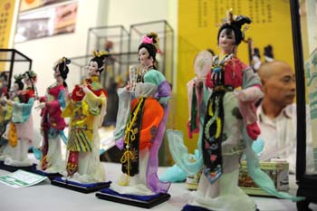 在首屆中國(guó)非物質(zhì)文化遺產(chǎn)博覽會(huì)上展出了北京絹人的制作工藝和作品。記者 徐速繪/攝 |